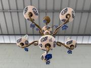 Chandelier Vintage Belgium Brass/porcelain 1960 for sale in Inventory, Lighting | Glantiques