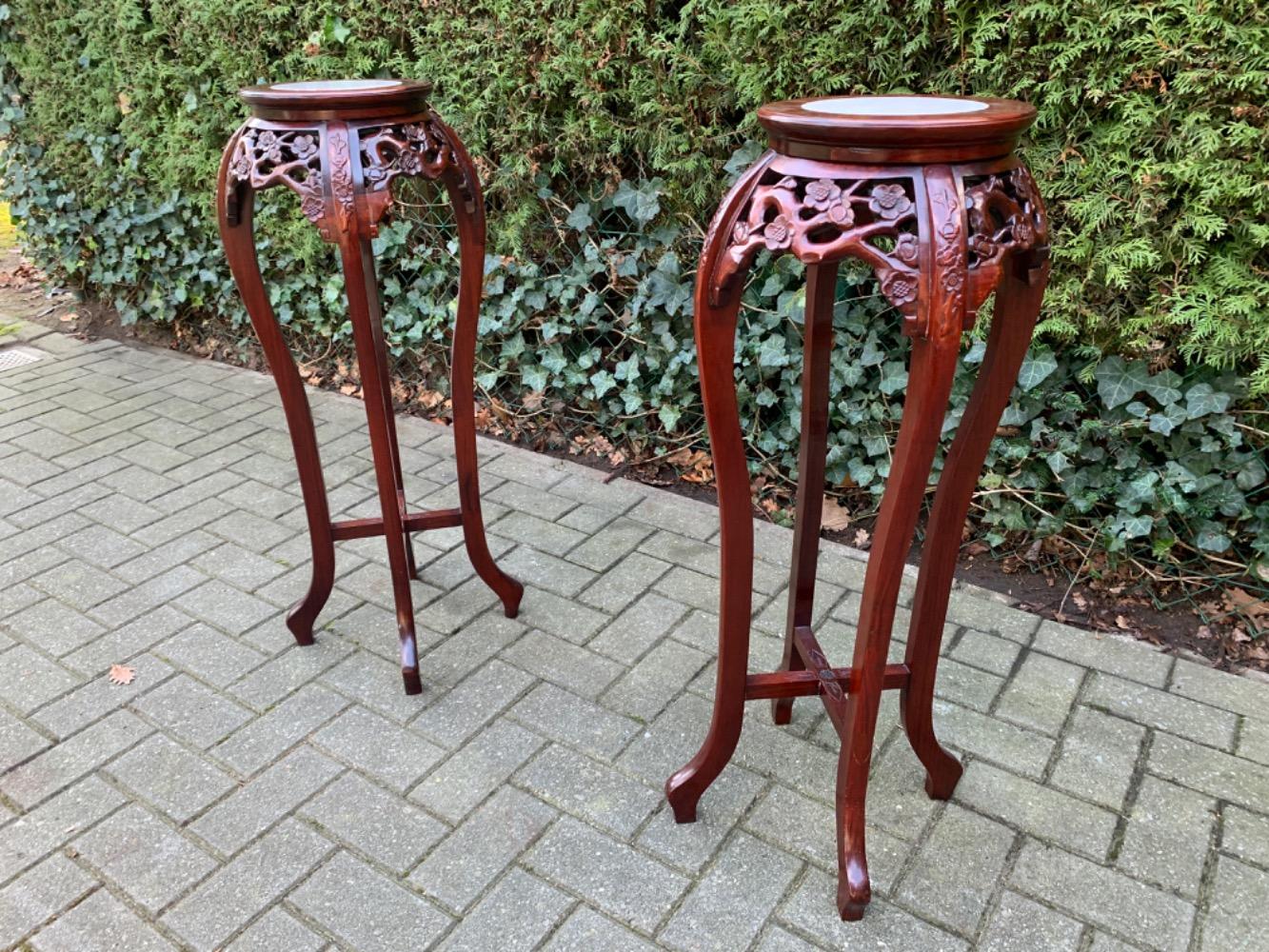 Pair of plantstands Oriental Asia Wood/marble 1970 for sale in Inventory, Miscellaneous | Glantiques