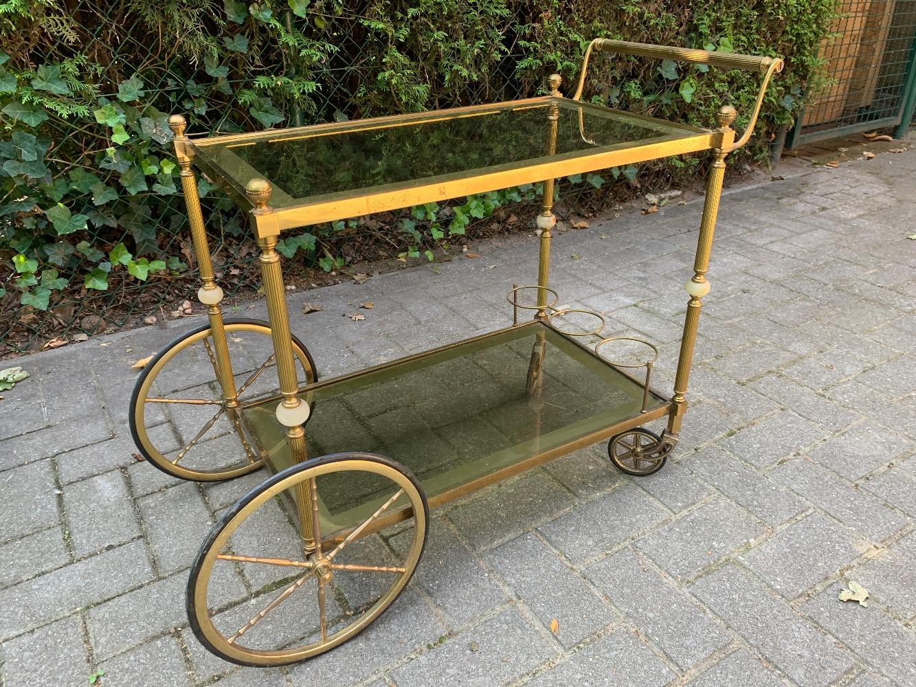 Serving cart Hollywood regency style Belgium Bronze/glass 1960 for sale in Inventory, Miscellaneous | Glantiques