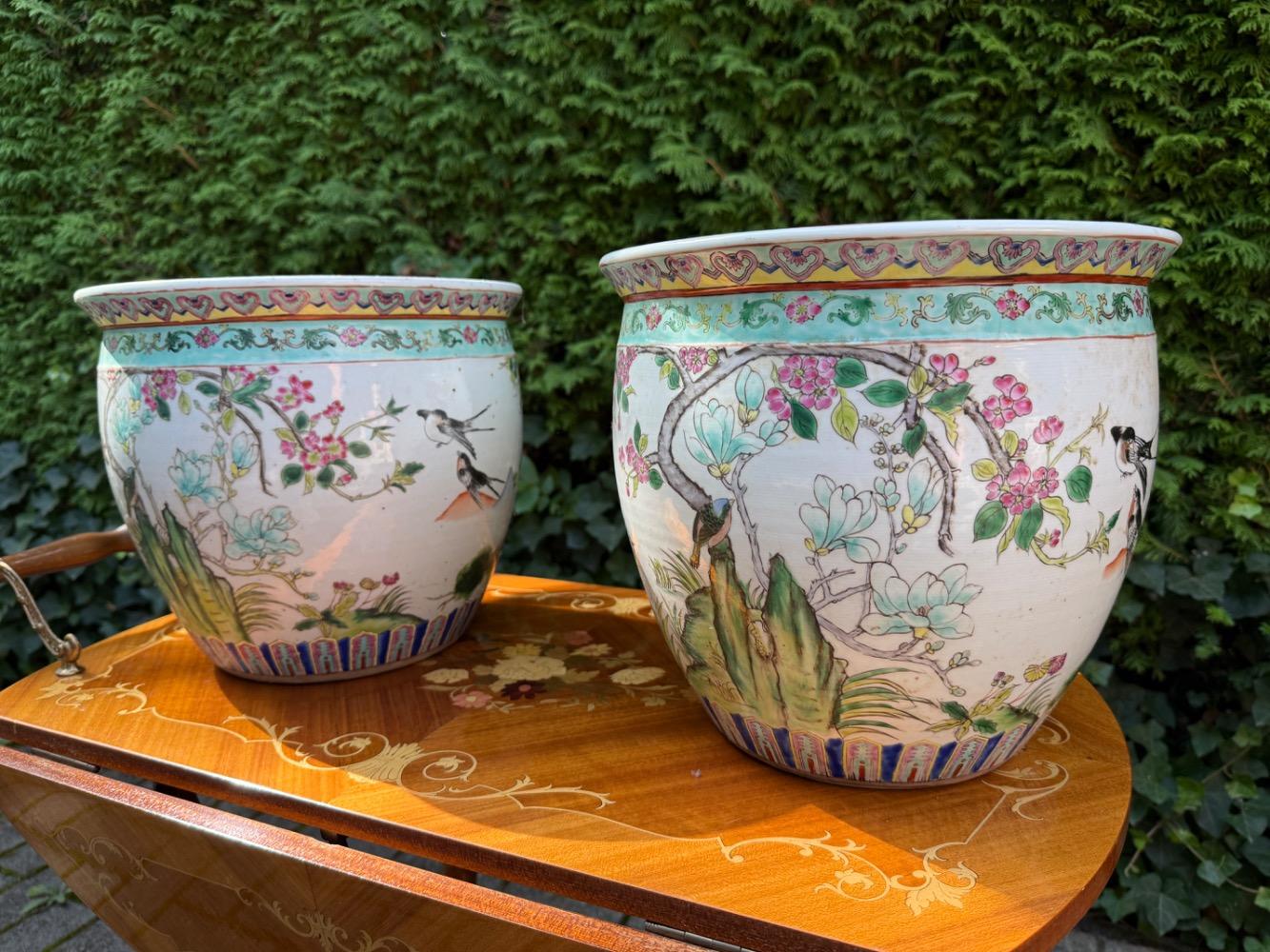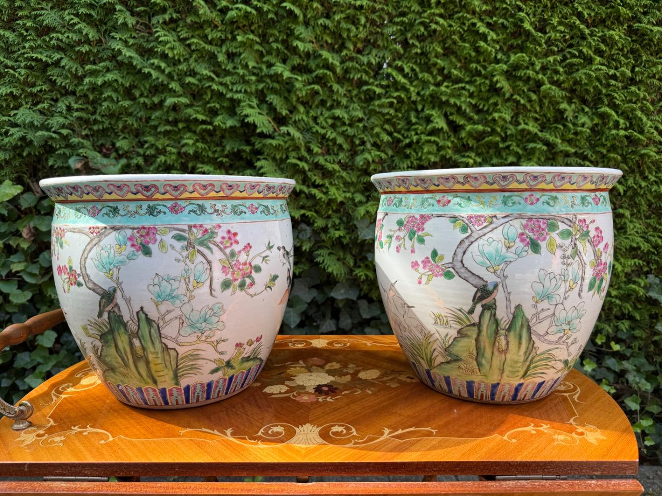 Pair of flower pots Chinese China Porcelain 1960 for sale in Inventory, Statues, sculptures & porcelain | Glantiques