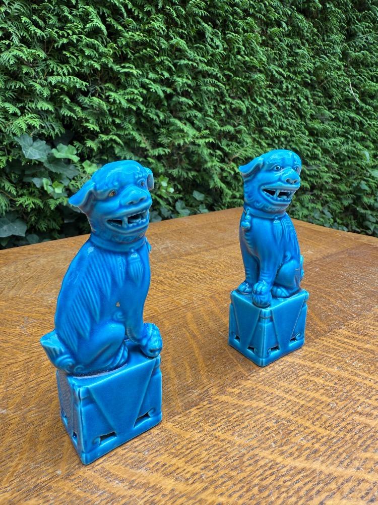 Pair of foo dogs Chinese China Porcelain 1960 for sale in Inventory, Statues, sculptures & porcelain | Glantiques